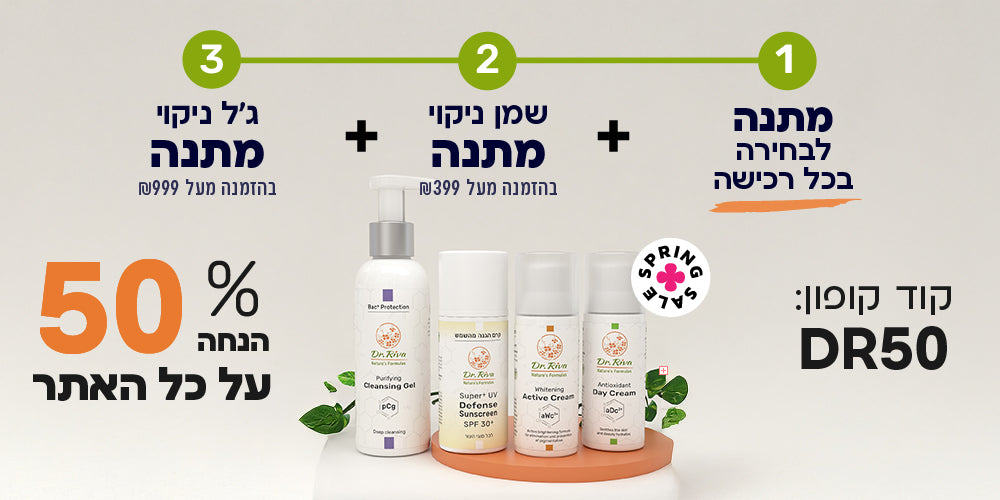 🧴שמן-באלם ניקוי מתנה בכל רכישה מעל 399 ש״ח (סל מעל 799 ש״ח). קוד קופון DR50 ל 50% הנחה על כל האתר